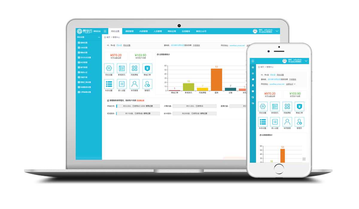 易学云智能网校隶属于陕西易学云科技有限公司,主要服务于中小型教育培训企业,使教育培训企业5-10分钟拥有自己的网校。帮您打破所有技术壁垒, 最大限度地降低了建立网校的技术和资金门槛。并且拥有独立版权logo、域名、客服、在线考试、视频录播、直播、面授预定系统、微信版网校、公众号管理平台、oa办公系统及APP(管理者用)、苹果/安卓版APP(学生用)、试题视频资源库、产品按需付费、成本可控,让您最小成本搭建自己独立域名的网校平台,并且可以通过教学资源后台交易系统和全国教育同行进行“0”距离接触,共享销售,互惠互利。